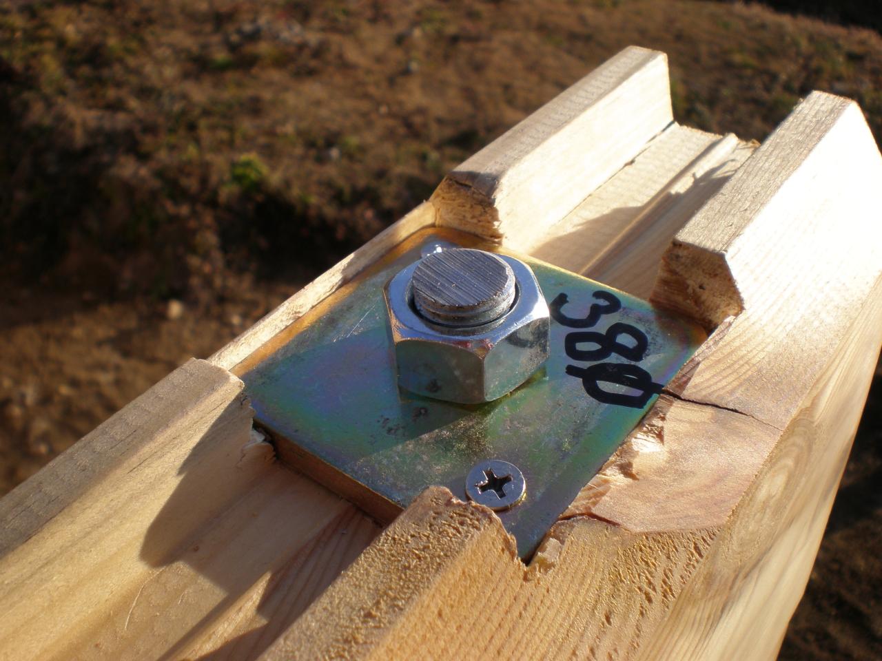 Mercifully, most of my crap chisel work is covered by the big, square washer. Note thet the bolt in this case is a